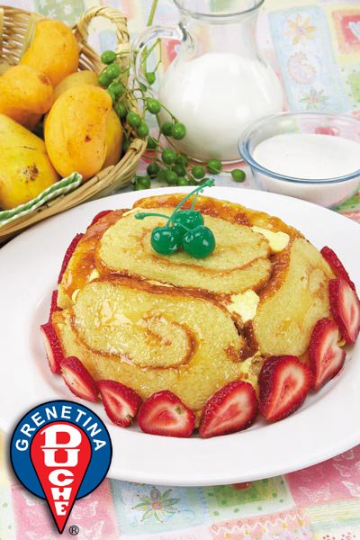 9 Desenrolla el pan, úntale una capa del mousse, vuelve a enrollar