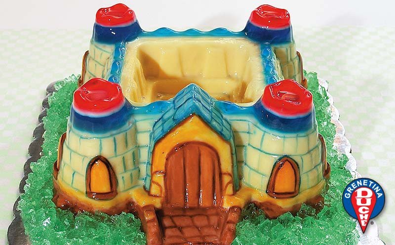 Manera de Preparar : Pinta la gelatina de color amarillo muy claro y vierte al molde. Refrigera hasta que cuaje por completo. Desmolda con cuidado y pinta los detalles del castillo con los colores de tu preferencia. Si lo deseas, puedes hacer la punta de las torres con gelatina de agua para que resalten, como se muestra en la foto. Consulta el catálogo de productos Duché, dando click aquí ¿Dónde comprar los productos Duché? Tiendas virtuales Tiendas físicas ![]()
